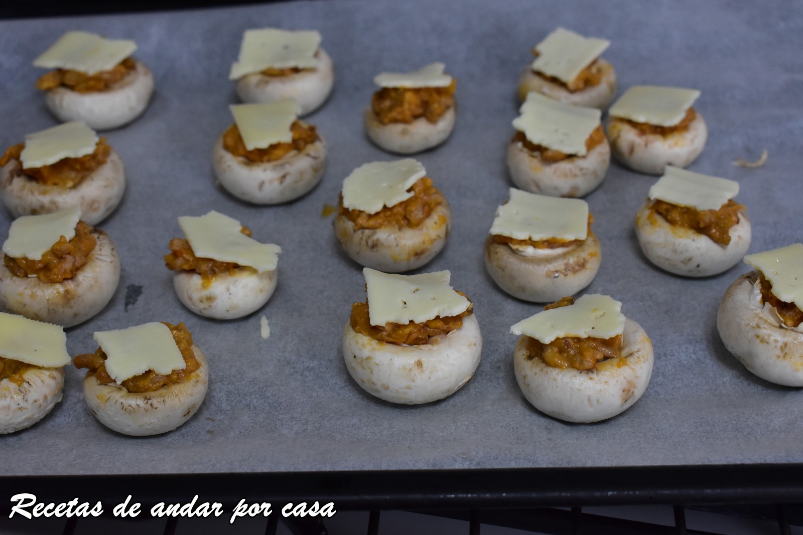 Se rellenan los champiñones, se ponen sobre una bandeja